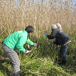 琵琶湖ヨシ刈り体験。伊藤園社員と一般公募で